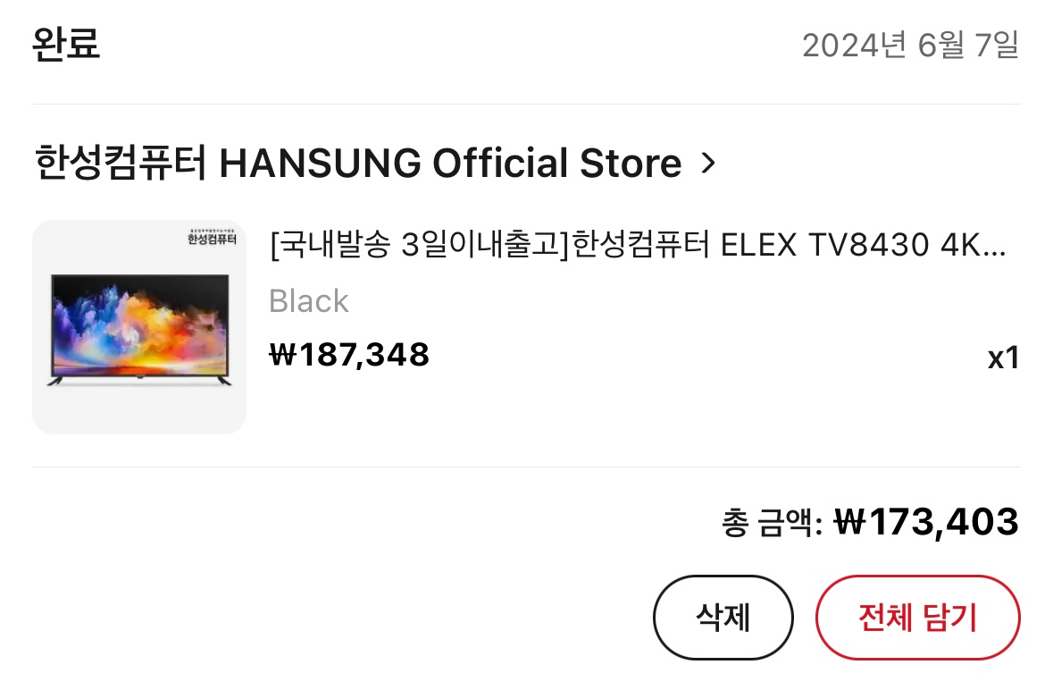 알리 익스프레스 통해서 구매한 화면입니다 (광고아님) 18만 7천원짜리 제품을 카드 할인으로 17만 3천원에 구입.